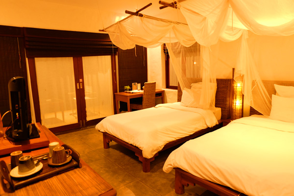 ห้องพักตกแต่งด้วยเฟอร์นิเจอร์ ที่ดูผ่อนคลาย เรียบง่าย หรูหรา ร่วมสมัย และแฝงไว้ด้วยความสุขสงบ