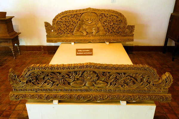 “หัวเตียง” และ “ท้ายเตียง” ทำจากไม้สักแกะสลักอย่างวิจิตรงดงาม