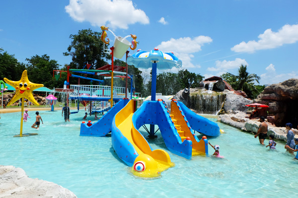 เล่นน้ำใสสะอาดในสระน้ำวน ลอดอุโมงค์น้ำพุที่ร่มรื่น ชุ่มฉ่ำ และเครื่องเล่นนานาชนิด