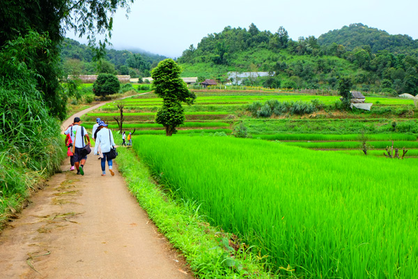 สัมผัสวิถีชีวิตเกษตรกรชาวเขา ระหว่างทางเดินชมธรรมชาติ ที่ทักทายนักท่องเที่ยวอย่างมีอัธยาศัยไมตรี พร้อมโชว์หนูนาที่จับได้ในนาข้าว
