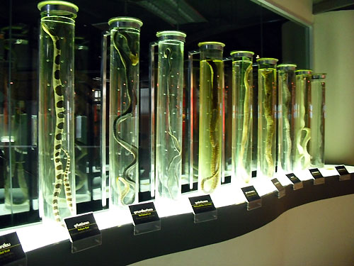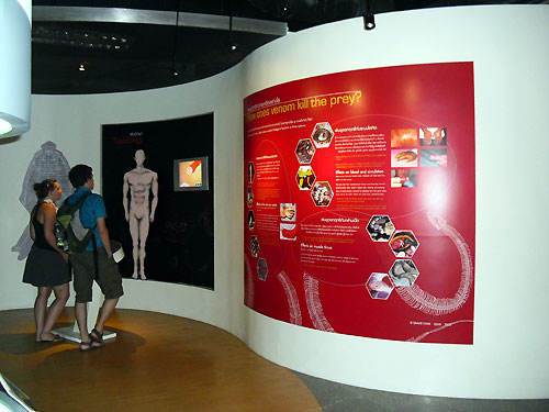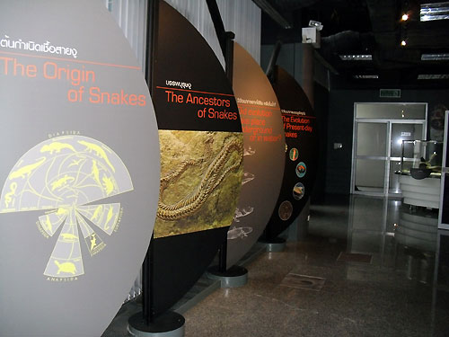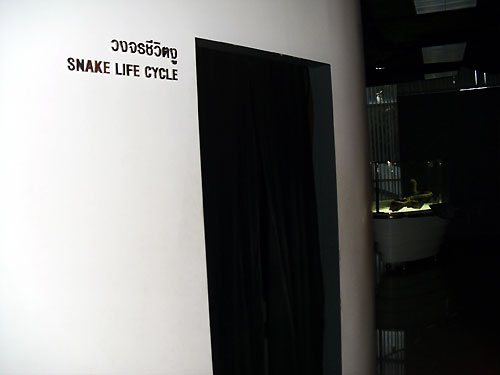 ตึก ๔ มะเสง นี้ใช้เป็นพื้นที่แสดงนิทรรศการสำหรับงูพิษ พอซื้อตั๋วแล้วระหว่างรอดูโชว์ก็เข้ามาดูนิทรรศการที่นี่ก่อนนะ