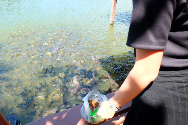 กิจกรรมสนุกสนาน สำหรับทุกคน บริเวณสระน้ำ หลังร้านอาหารควายคะนอง ที่มีปลามากมาย