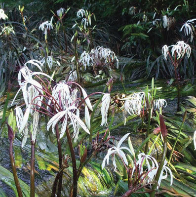 ทุกปีเมื่อสายลมมรสุมตะวันออกเฉียงเหนือพัดผ่าน เข้ามา ผืนน้ำใสแจ๋วของคลองนาคาจะงดงามจับตา ด้วยดอกไม้ในธารน้ำ นาม ‘พลับพลึงธาร’ ที่สร้าง ความตื่นตาให้กับทุกคนที่ได้พบเห็น พลับพลึงธาร เป็นพืชน้ำที่มีดอกสีขาว กลีบยาวเรียว พบได้แห่ง เดียวในโลก คือคลองนาคาเท่านั้น นอกจากดอกขาว สะอาดดูสวยสะอ้านรับกับสายน้ำใสที่แสงแดดส่อง ทะลุลงไปถึงพื้น พลับพลึงธารยังส่งกลิ่นหอมอ่อน เมื่อบานเต็มที่ จึงเรียกกันอีกชื่อว่า ‘หอมน้ำ’ บ่งบอก ความพิเศษของพรรณไม้นี้ได้อย่างชัดเจน