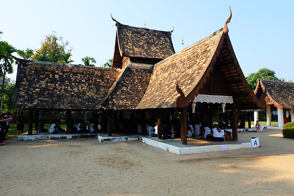 ชม “วิหารมณฑปจตุรมุขไม้สักทอง” แบบพื้นเมืองล้านนา อันเป็นต้นแบบของหอคำหลวง ในอุทยานหลวงราชพฤกษ์ ซึ่งพบเพียงหลังเดียวในภาคเหนือ
